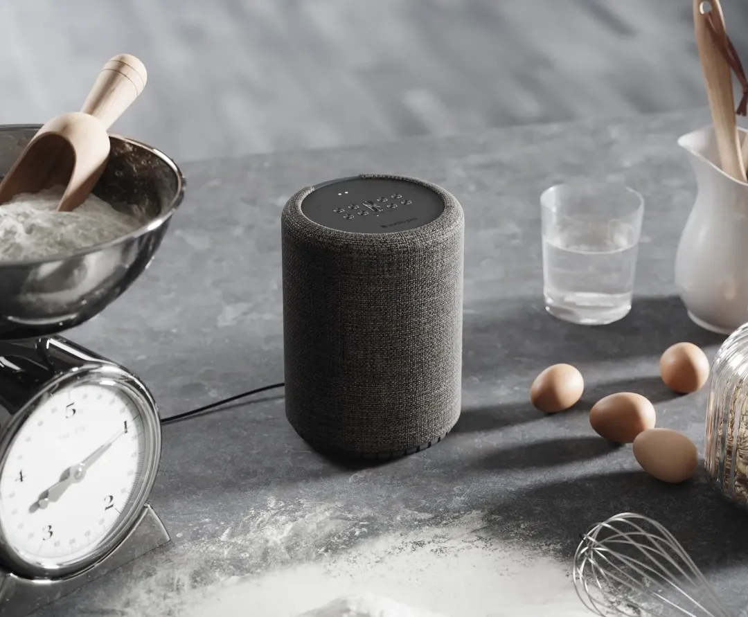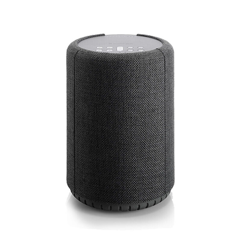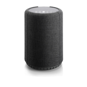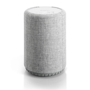 Un altavoz con un tamaño modesto y un diseño redondeado, que se convierte en una adición inteligente al espacio más pequeño. La parte frontal de tela complementa perfectamente las tendencias modernas de diseño de interiores con la elección de dos tonos de gris, lo que permite una completa combinación de colores para su hogar.